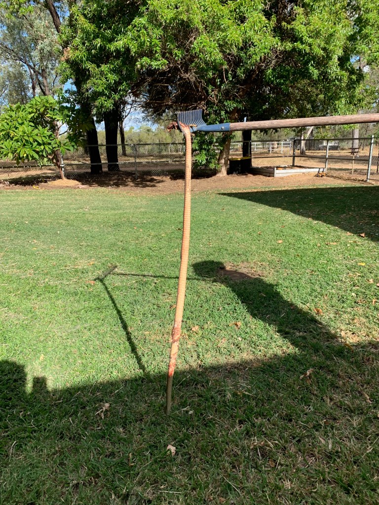 The third and most unsettling event was having to deal with a large brown snake on our back table right beside the back door. I am not unfamiliar with dealing with the slithery kind, we had to deal with them back ‘home’ however this was a tad more complicated. I had Ashton on my hip walking down the back steps ready to do the school pickup when I saw the big brown tail take off across the table right beside me. This table is against the back of the house and we have 2 large tool type storage boxes and a car fridge on it, and underneath is 5 rubber tuff tubs that store all of our shoes, so there was no way I was leaving this sucker where he was! I probably would have moved out if I didn’t vacate him. Anyway, so I put Ashton in the ute so he was safe, then went back to try and see this thing. They are so quick if you take eyes off them you usually lose their whereabouts, which is not what I wanted! The men were not around at the time, out and about somewhere too far away to even here my attempts of radio contact. I eventually saw him wedged between a tool box and car fridge so I decided to make a break for it and get the shotgun. Problem, Matt hadn’t informed me of the keys secret spot! Quick dash around trying to think like a man 🤪 and thankfully I found the key pretty quick. Back to the snake and it’s tricky spot. I decided to stand on our main outdoor table, a big beautiful old wool classing table that sits centre in our patio area opposite the ‘snake’ table. I didn’t want to fire at it between the 1 inch gap because I was worried about blowing the car fridge to pieces and I knew Matt would be disappointed about that so I started throwing things in it’s direction to scare it out. No luck it was completely ignoring any of my scare attempts. Meanwhile I’m now late for school pickup so I had to make arrangements for that and Ashtons still in the car. I decided I couldn’t wait any longer and I just have to take the shot. So I took aim down the tiny gap and fired (nearly deafened me under the tin roof I was practically touching with my head on) and I thankfully got it but not enough to kill it. It took off a million miles an hour under the house, I jumped off the table and ended up firing another 2 times and in the third shot it was wounded enough that it was immobilised. I waited a minute or so to make sure it was definitely not going anywhere and I left to pick the girls up! 😰 Turns out I only shaved the fridge cover and the cord which is an easy fix and the table bares some scars. …I did have to scrub some blood and guts off the house wall though! 🤪