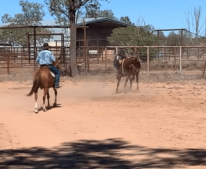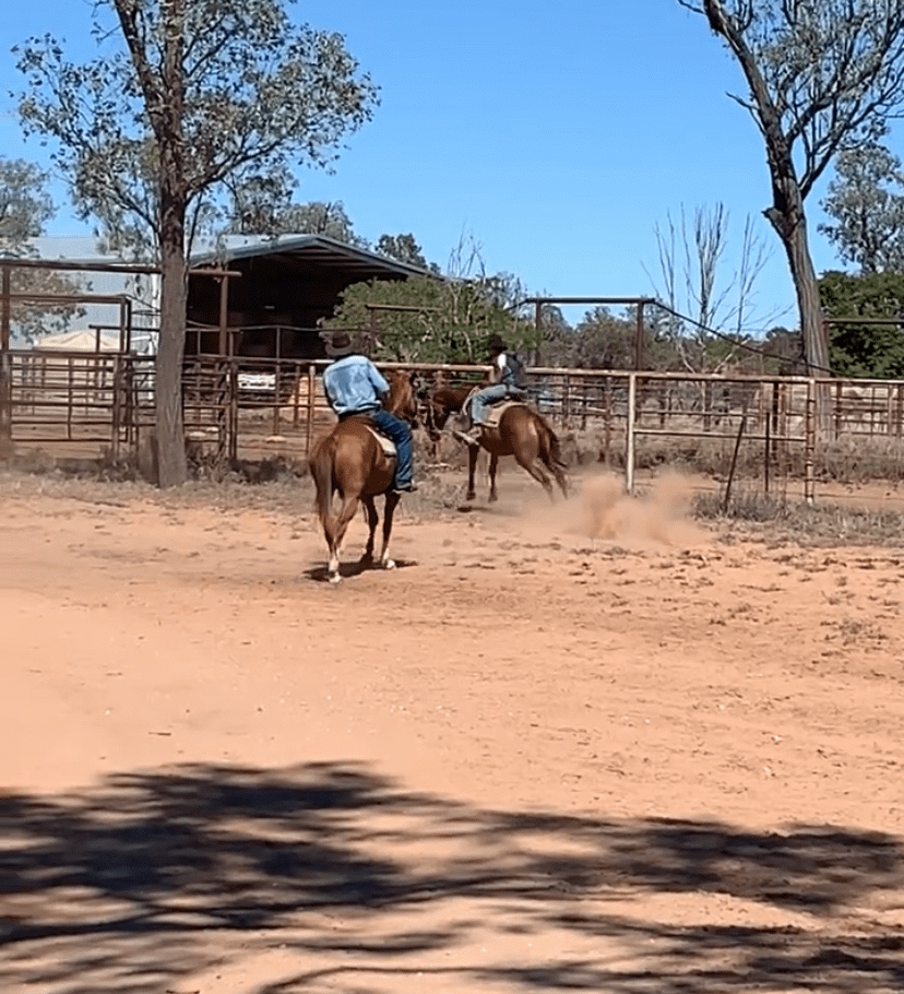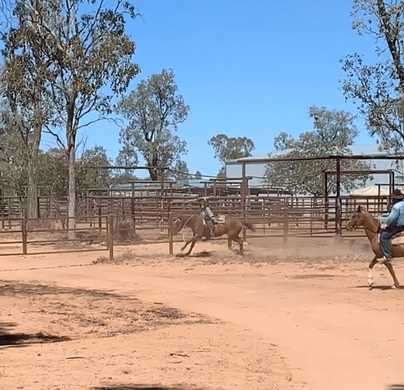 It was the young ringers time for a buster next. The kids and I were up at the yards waiting for the boys to walk cattle out. One of the young ringers got on his horse and the horse started bucking. He held on for dear life hanging precariously off the side of his horse before finally falling when his horse ran him against the rail. He thankfully only scraped his arm on the rail and we all had a bit of a laugh once we knew he was alright.