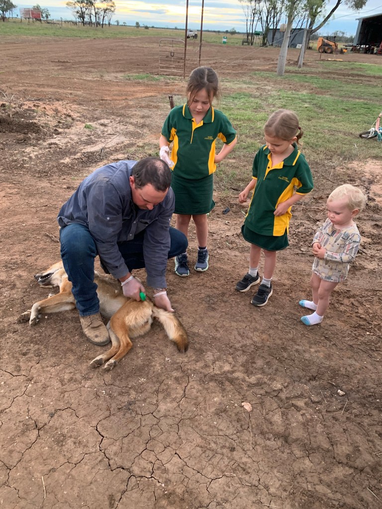 The kids watching Matt scalp a dingo