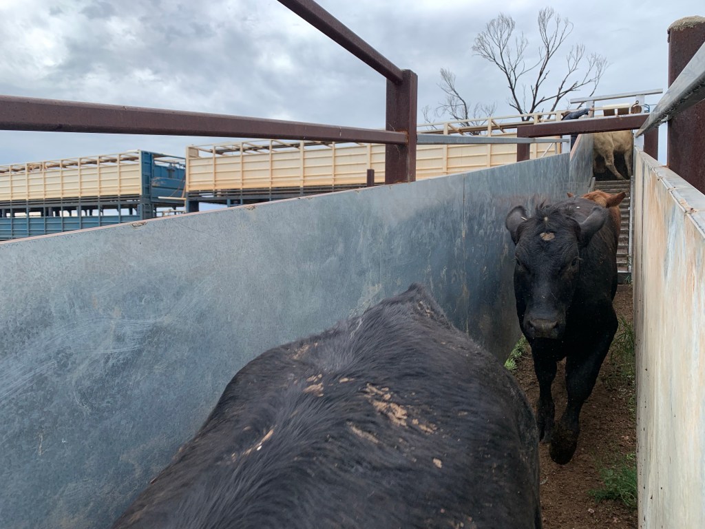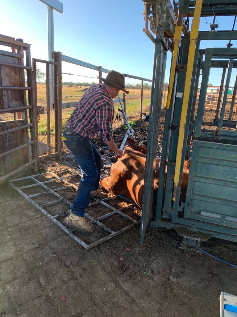 We had about 60 Mickey bulls to cut in this load, I say ‘we’ I really mean Matt 😉 My job is to pull the tail hard from the offside to keep the bull pinned and minimise moving