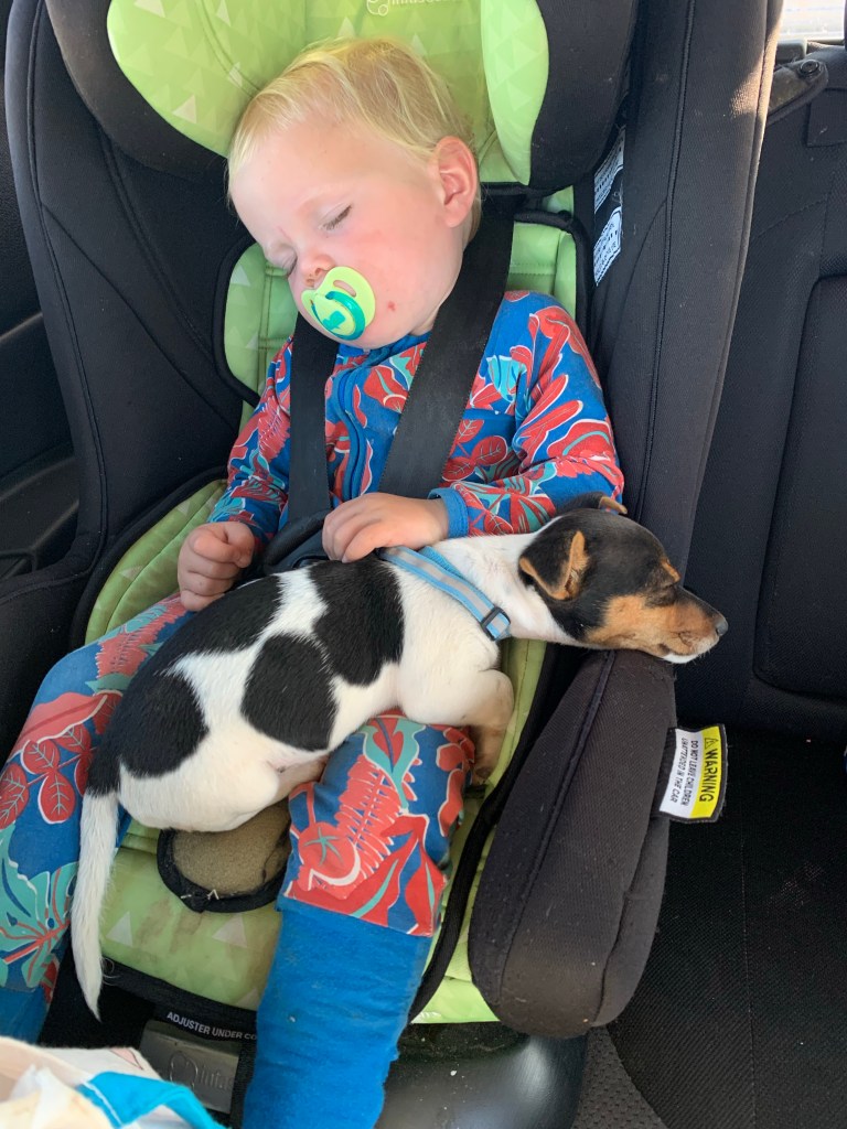 Ashton sound asleep on the water run