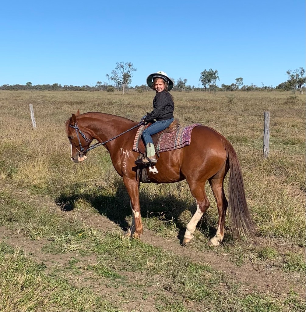 Lexi riding Frankie mustering