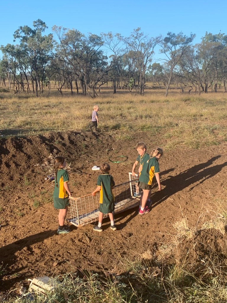 Bush kids making their own fun (stealing items from the dump to make a cubby)