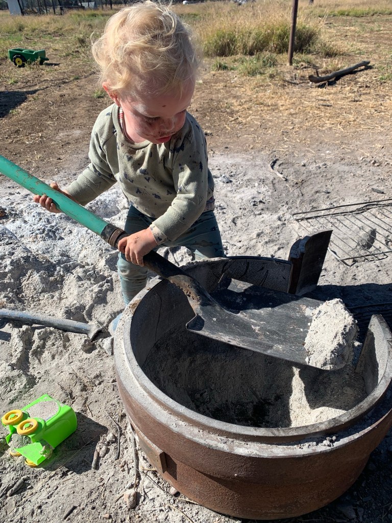 Ashton playing in the ash like it’s a sandpit