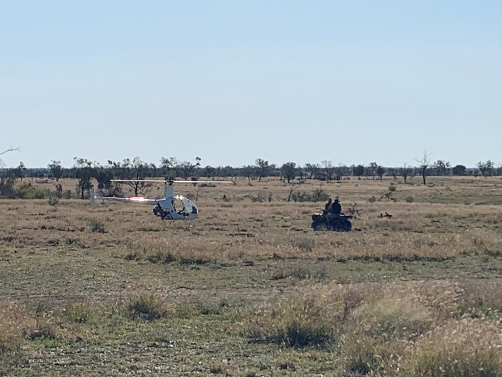 Watching the helicopter mustering cattle