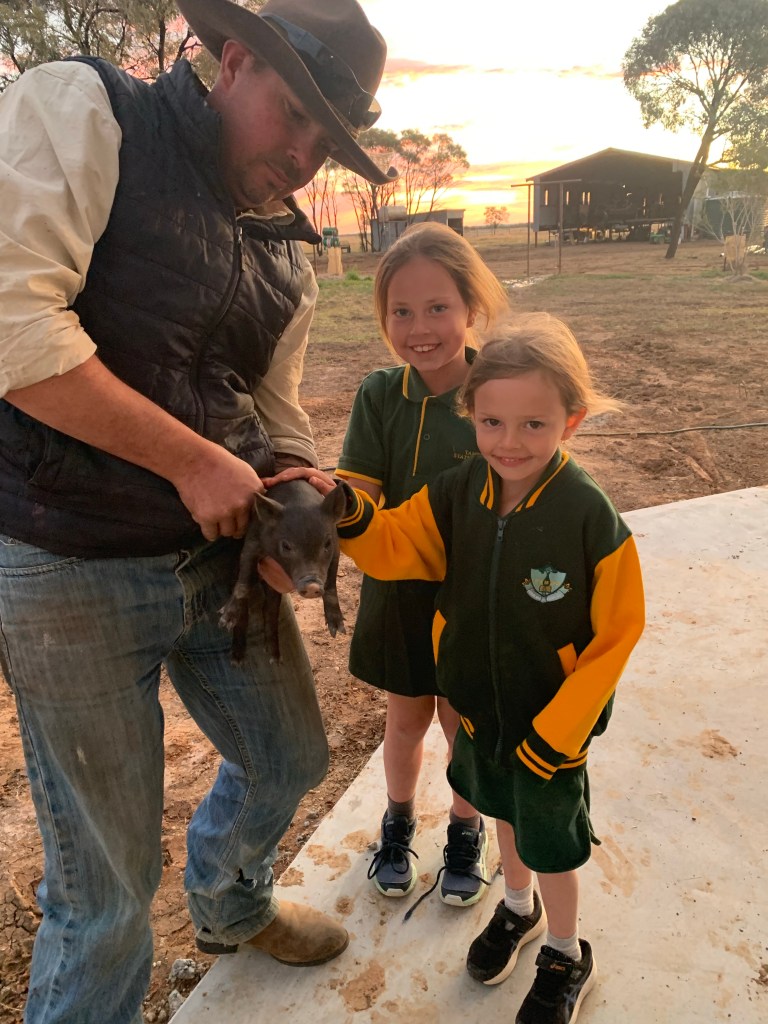 Matt brought home a feral piglet to show the kids