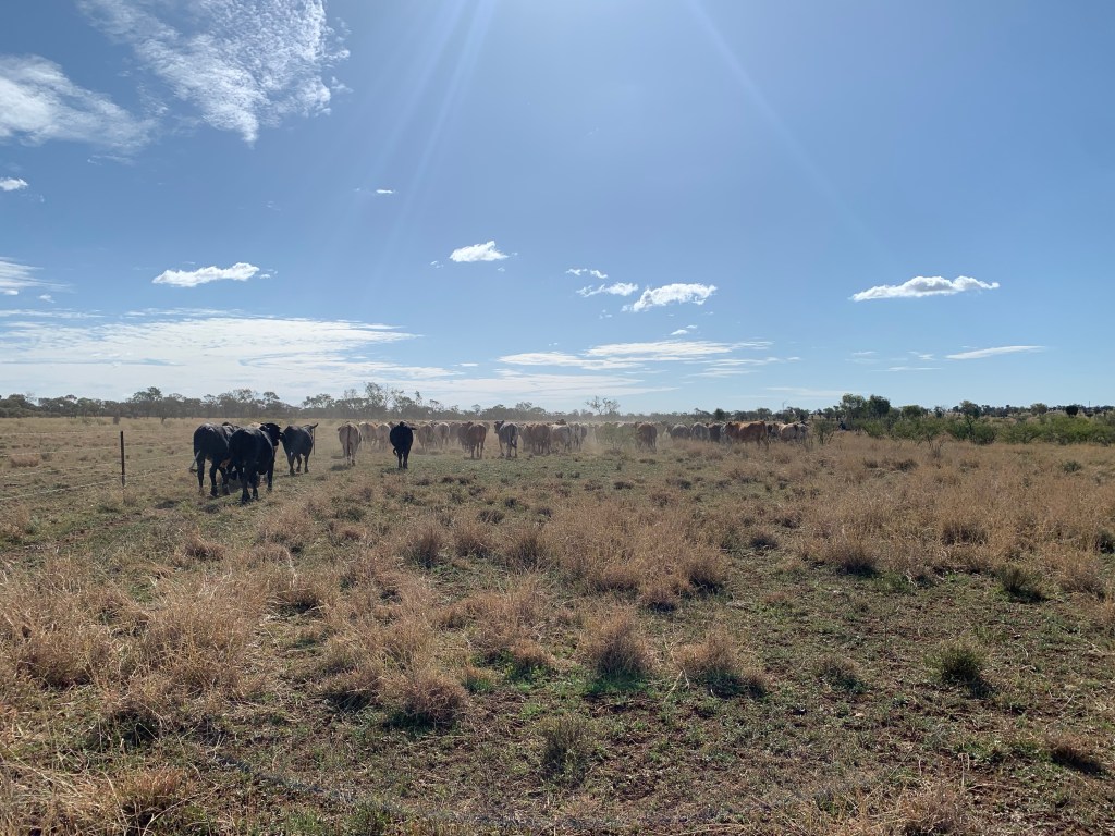 Mustering cattle under a glorious afternoon sky
