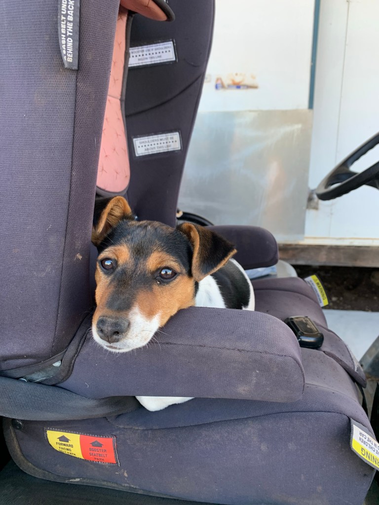 Ziggy having a rest on the buggy
