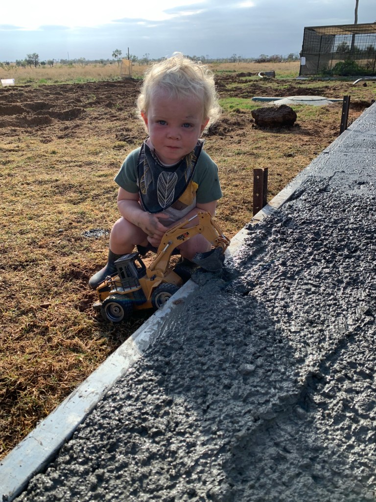 Ashton playing in fresh concrete