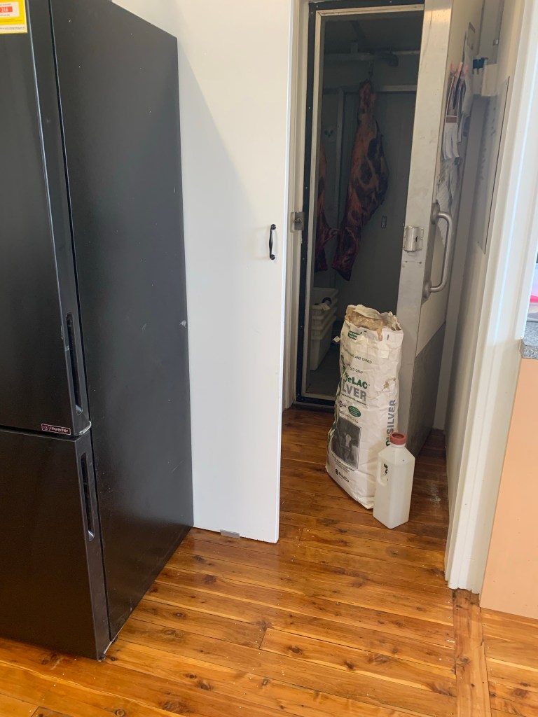 Just a normal kitchen, calf milk in your pantry and a beast hanging in the cold room 😉