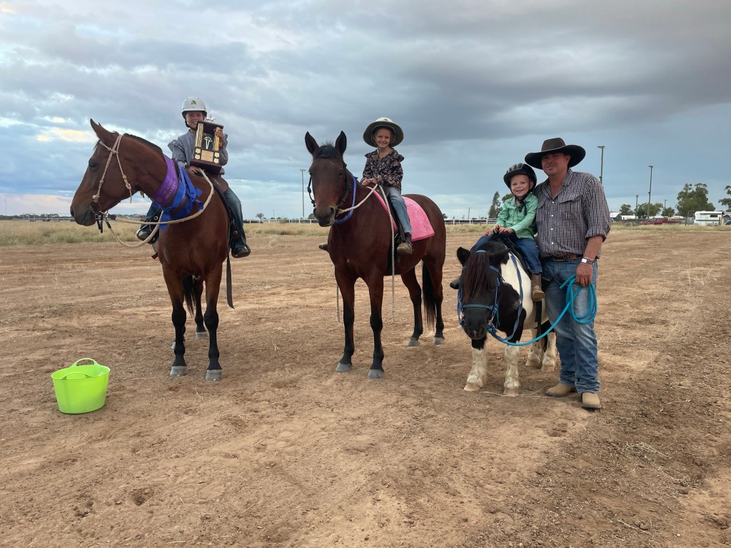 The kids are going good. Indigo seems to be entering her ‘tween’ stage early, God help me! She lives with enthusiasm and personality our Indi, always wanting to partake in tasks and so very social! She thinks fast and talks even faster. Lexi is her own person, not particularly fussed about her peers, incredibly ignorant and just goes about life doing her own thing. I’ve always said ‘Lexi is the cutest devil you know’! Ashton, my Ashy boy! He is growing so big and independent. He loves anything with wheels and even more so if there’s mud! He spends his days pushing something with wheels while blowing raspberry sounds from his lips to imitate the motor, riding something with wheels or watching something with wheels. He can even ride his bike without training wheels now. He’s my little shadow, he gets dragged from pillar to post some days but happily for the most part. We enjoyed Tambo and Blackall shows in recent weeks. Indi and Ashton rode their horses in the gymkhana at Tambo. It was Ashton’s first time riding his Shetland Zorro at a competition and he seemed to enjoy it. I don’t think he will be a horseman, perhaps mustering on wheels will be more his style but I hope he at least learns how to ride horses well. It’s such a great skill to have if you want a life on the land. Indi took out first place for all her events. She’s very competitive and loves winning, but remains very encouraging and humble to her peers. Lexi missed out on riding at Tambo as she was nursing a sore toe! The week before the show she was riding her motorbike when her foot got hooked on a rock and pulled backward under the peg..in turn ripping off her toe nail and cutting the tip. That Sunday afternoon ride resulted in me driving her to Tambo primary health centre then sent on to Blackall for some stitches and toenail removal. 6 hours and 320km later we were back home. She was very brave, only crying when she had the numbing needles! Blackall show also resulted in lots of ribbons. Indi competed in the junior stockmans challenge for the first time. This consists of a dry arena pattern followed by a campdraft type run where they are scored on different parts of each event. Her horse was a little difficult in the dry pattern, despite practicing many times at home, the environment and big sand arena was adding a bit of spirit to all the horses on the day and she didn’t execute a perfect pattern but got the elements right. She handled it all very well. Her campdraft section known as the ‘wet work’ was better and she actually won a 3rd for her efforts. I was so very proud. All 3 kids rode in the gymkhana….a bit of horse swapping and away we went. Ashton riding his little fat Shetland again and Dad running his hardest, they won a 3rd I think. Lexi was in the same age group as Ashton but was the only independent rider. She picked up a 1st and rode very kindly. Indi was superstar of her age group again, taking all firsts and winning overall champion rider. She was ecstatic, and we were very proud!