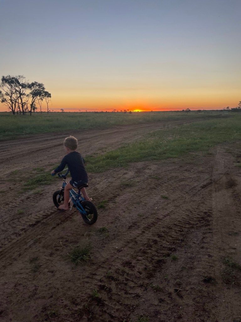• Some of my favourite things about a generic day: the smell of fresh laundry hanging on the clothes line, a gentle breeze coming through the house and sunlight hitting different angles, the fact I can turn around 360 degrees and not see anything but horizon at the end of open paddocks, hearing Brolga’s call and watching them dance with each other, the spectacular sunrise and sunsets, the stillness at night with no urban interruption to the starry sky and sounds of nature, watching the kids have absolute freedom.