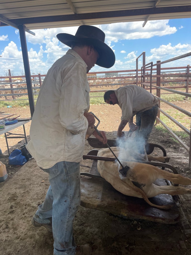 Last week Matt and I were processing cattle, we had about 200 to do and 30 mickey bulls to cut. We were only about 20 head done and I was in the backyards bringing cattle up and Matt yelled out for me. I didn’t think much of it and thought to myself ‘yeah yeah I’ll be there in a minute’ only to realise when I got closer he was holding his hand across his arm. He had put the scalpel into his forearm and was bleeding everywhere. I sorted the cattle out, emptying the race and pushing cattle back into yards etc before ushering him to the ute and off to town we go. The cut itself was only minimal but we were more concerned about germs given that he had already cut about 10 bulls with the scalpel. A good flush out and a bit of glue and we were back on our way home to finish the job a few hours later!
