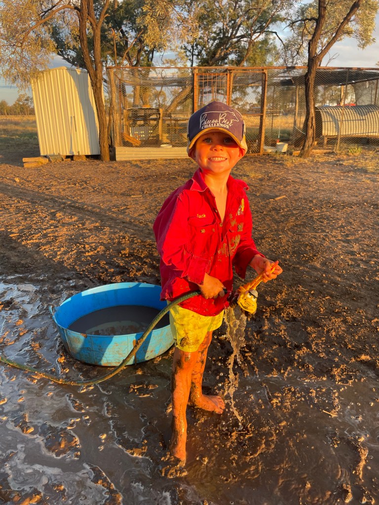 Only a few days later I was leaving town, it was just Ashton and I, after picking up a ute and big trailer load of sawdust, and Ashton just didn’t seem himself. As we were getting ready to go he tells me he has a sore ear. A quick assessment of him tells me he has an ear infection so off I go back to the health centre. Indeed it was an infection, so some antibiotics and a dose of panadol for the trip home and we were on our way. As we’re heading home with this big heavy load on the sky was getting darker and darker ahead and a big storm was brewing. Matt and the girls weren’t at home so I attempted to ring our neighbour for a weather report before I lost phone reception but got no answer. I decide to press on and hope for the best, knowing that our opportunity to turn around would end at the bitumen and we would either make it home or get bogged. We hit the edge of the storm about 20km from home and continued slowly along the gravel until we made it to our driveway. Into 4×4 we go and start along the black soil. All was going well and it didn’t seem too bad until I got to the first grid which is on a bit of a jump up and we just started sliding, the ute made that awful grinding sound when all the electric stuff just locks you up and you really have no control. Ok then, looks like we’re going forward like it or not! I aim for the middle of the grid, take off all brakes and hope the trailer follows straight behind. We miss the grid sides by inches and we’re through. Phew! Right. “Ashy I think we will go really slow!” A few dodgy places and more grid crossings and we made it home! Ute and trailer caked in thick black mud but we didn’t have to walk in and abandon ‘ship’, so it was a win. A few hours on the gurney the next day and the trailer was clean….I’m still yet to do the ute.